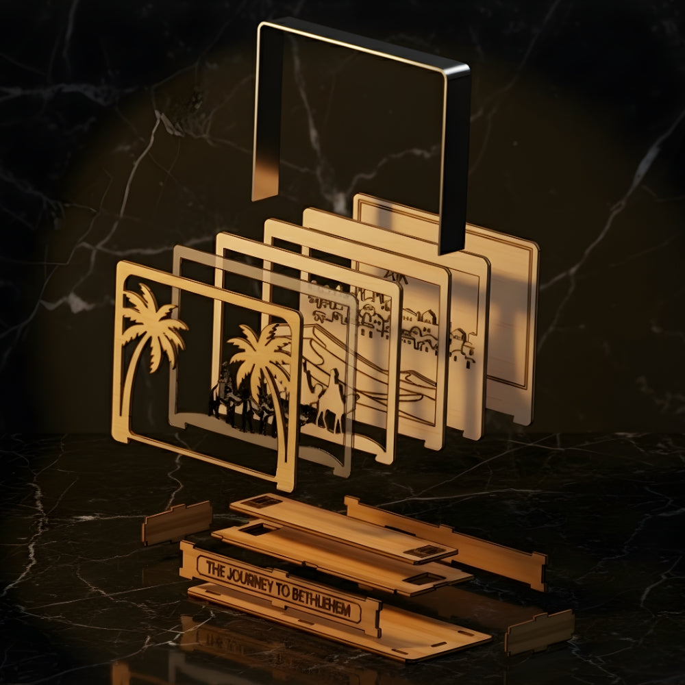 6-Layer Nativity Shadow Box SVG File, The Journey to Bethlehem, 3D Laser Cut Christmas Decor, Light Box SVG, Laser Ready Digital File