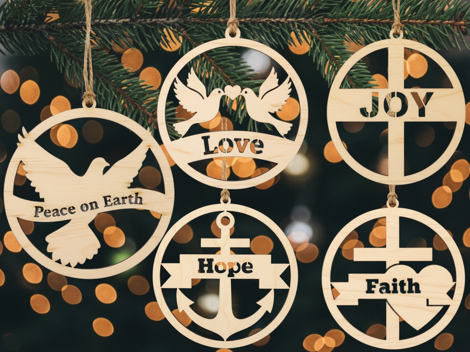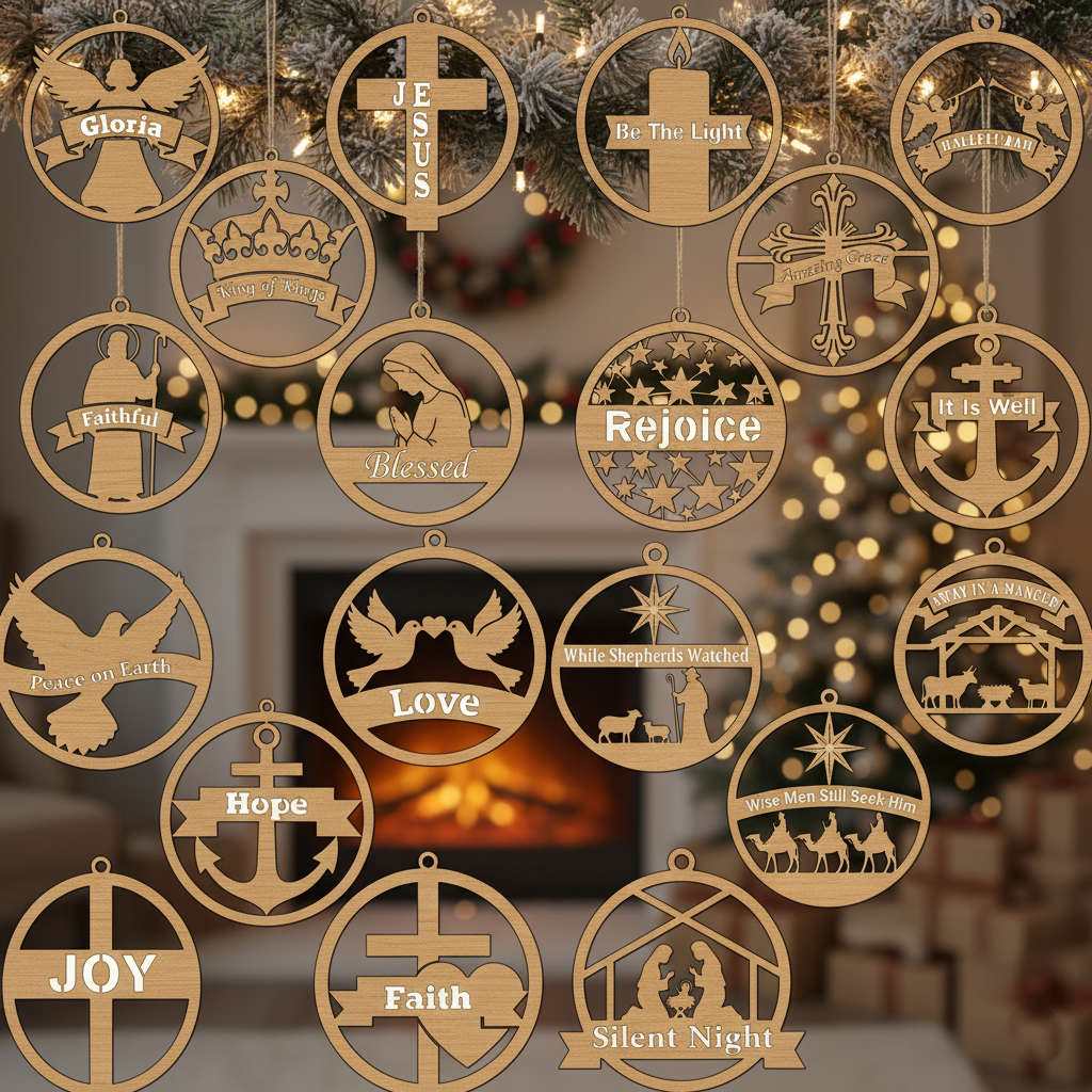 20 Christian Christmas Ornament SVG Bundle | Nativity Jesus Cross Dove Baubles | Religious Laser Cut Files |Glowforge Cricut CNC Wood Slices